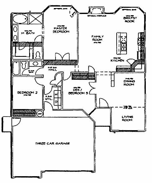 As you enter the home you'll pass the living/dining room and 3rd bedroom just before you come to the large family room with optional fireplace. From the family room you can access the kitchen with breakfast nook, 2nd bedroom, hall bath and the massive master bedroom and bath with dual vanities.