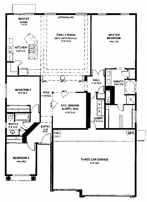 As you enter the home you'll immediately pass the 2nd and 3rd bedrooms on your left and the standard dining room on your right just before you come to the spacious family room with optional fireplace. From the family room you can access the kitchen with breakfast nook and the master bedroom and bath with dual vanities and a walk-in closet.