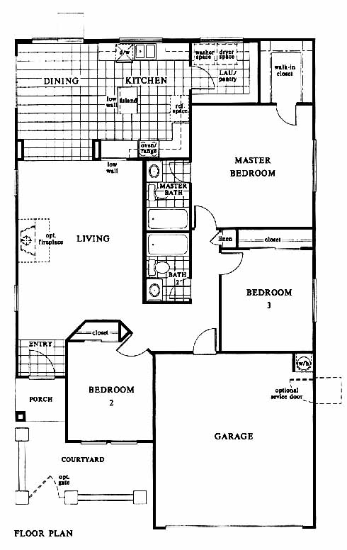 The tiled entry takes you directly into the living room with optional fireplace. From the living room you can access the tiled kitchen with dining area, 2nd and 3rd bedrooms, hall bath and the master bedroom and bath with a walk-in closet.