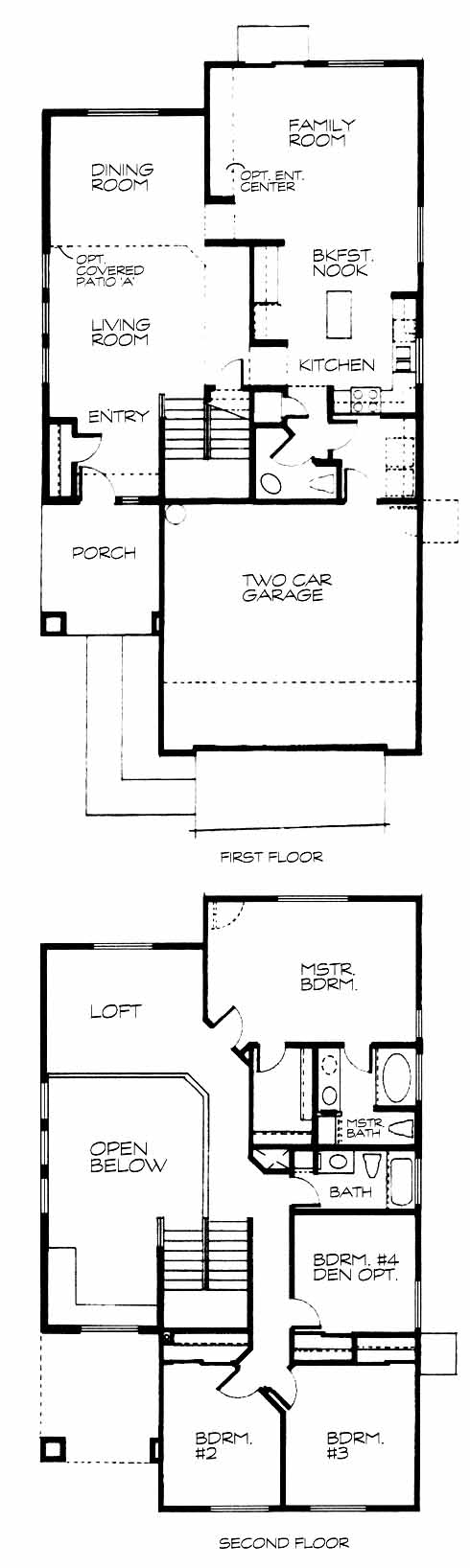 The large living and dining room area greets you as you enter the home. Next you'll come to the family room with optional entertainment center. Open to the family room is the kitchen with island and breakfast nook. Upstairs you'll find the 2nd, 3rd and 4th bedrooms, hall bath, loft area and the master bedroom and bath with a walk-in closet.
