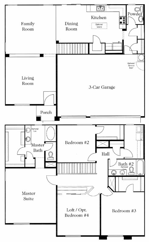 The large living room greets you as soon as you enter the home. Next you'll come to the family room which access's the dining room and kitchen with optional island. Upstairs you'll find the 2nd and 3rd bedrooms, loft area, hall bath and the master suite and bath.