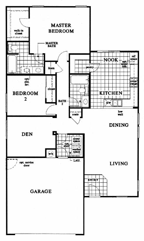 The tiled entry takes you directly into the living and dining room. >From the dining room you can access the den, tiled kitchen with nook, 2nd bedroom and master bedroom and bath with a walk-in closet.
