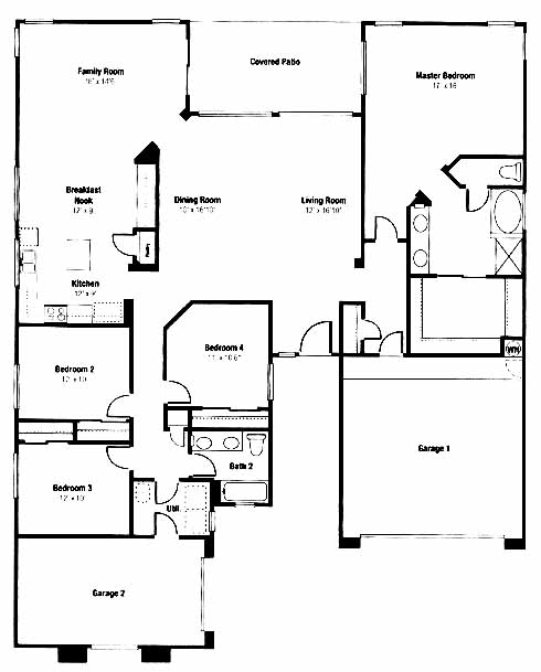 The large living and dining room greets you as you enter the home. Down the hall you'll find the 2nd, 3rd and 4th bedrooms and hall bath. Next is the family room with optional fireplace and media niche. Open to the family room is the kitchen with island, pantry and breakfast nook. On the other side of the home you'll find the master bedroom and bath and dual vanities.