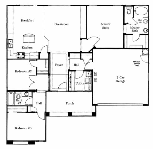 You'll find the 2nd and 3rd bedrooms with hall bath on your immediate left as you enter the home. Next you'll come to the massive great room with optional fireplace. From the great room you can access the kitchen with island and breakfast nook and the master bedroom and bath with a walk-in closet.