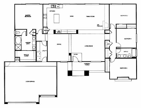 The entry takes you through the living and dining room and into the family room with optional fireplace. From the family room you can access the 2nd, 3rd and 4th bedrooms, hall bath, kitchen with nook and the master bedroom and bath.