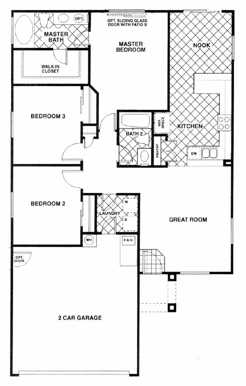 The tiled entry takes you into the large great room. From the great room you can access the kitchen with nook, 2nd and 3rd bedrooms, hall bath and the master bedroom and bath with a walk-in closet.