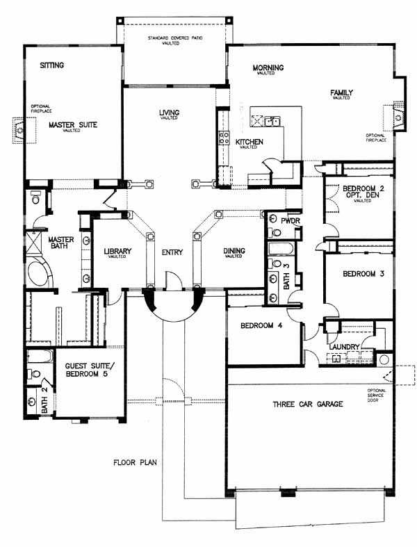 If you are looking for a spacious single story home, this is it. Not only does it offer four large bedrooms with options for a vaulted den and guest suite with its own full bath, the master suite is extraordinary. This room has a sitting area with ample windows, optional fireplace,luxurious master bath with bull-nosed marble counter top and garden tub, and a huge walk in closet. The kitchen provides plenty of storage with a walk in pantry and ample counter space. This home also comes with a three car garage.