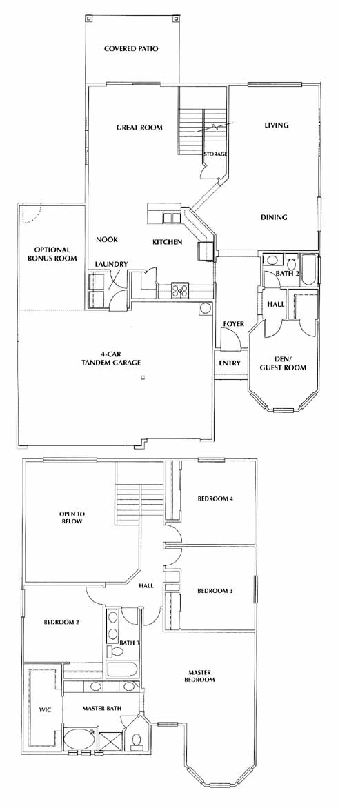 The foyer takes you past the 5th bedroom and into the large living and dining room area. Next you'll come to the great room. Open to the great room is the kitchen with pantry and nook. Upstairs you'll find 3 spacious bedrooms, hall bath and the massive master bedroom and bath.