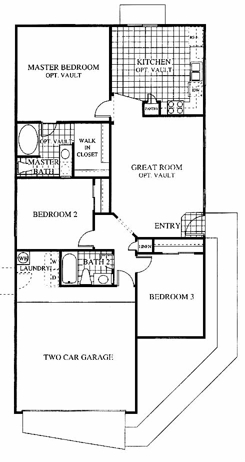 The tiled entry takes you into the great room with optional vaulted ceiling. From here you can access the 2nd bedroom, hall bath, tiled kitchen with pantry and the master bedroom and bath with a walk-in closet.