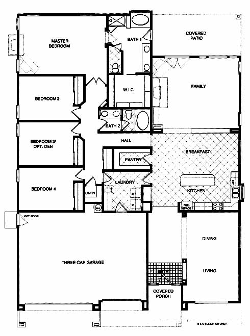 The tiled entry takes you past the living and dining room just before you come to the kitchen with island and breakfast area. The kitchen is open to the large family room with optional fireplace/entertainment center. Also accessible from the kitchen is the 2nd, 3rd and 4th bedrooms, hall bath and the master bedroom and bath with dual vanities and a walk-in closet.