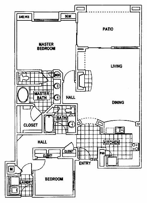 The tiled entry flanked by the 2nd bedroom and kitchen with pantry takes you into the large living and dining room area. From here you can access the rear patio and the massive master bedroom and tiled bath with dual vanities and a walk-in closet.