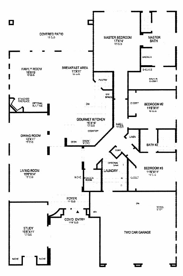 The master bedroom suite features a private bath and large walk-in closet. There are two secondary bedrooms and an additional bath. A quiet study rounds out this stylish, yet functional floor plan that includes a two-car garage