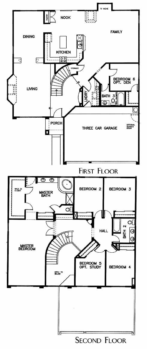 The entry takes you past the living and dining room and into the family room with TV niche. From here you can access the 6th bedroom with bath and the kitchen with island, pantry and breakfast nook. Upstairs you'll find the 4 spacious bedrooms, hall bath and the master bath with a walk-in closet.