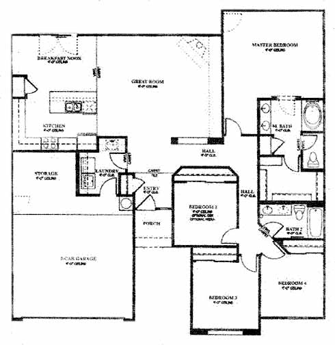 the large great room with optional fireplace greets you as you enter the home. Open to the great room is the kitchen with pantry and breakfast nook. On the other side of the home you'll find 3 spacious bedrooms, hall bath and the impressive master bedroom and bath with a walk-in closet.