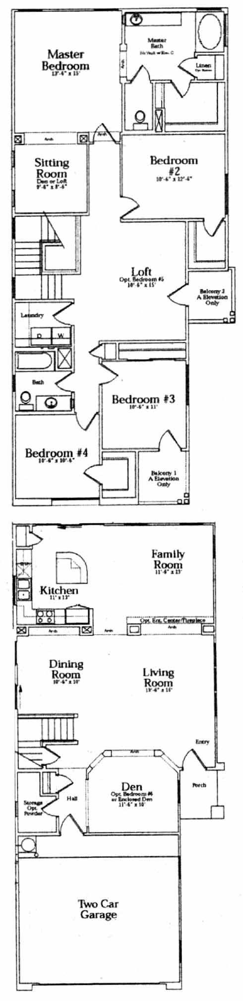 The entry takes you past the den and into the large living and dining room area. Next you'll come to the family room with optional fireplace. Open to the family room is the kitchen with island. Upstairs you'll find 3 spacious bedrooms, hall bath, loft area and the massive master bedroom with sitting room and master bath with a walk-in closet.