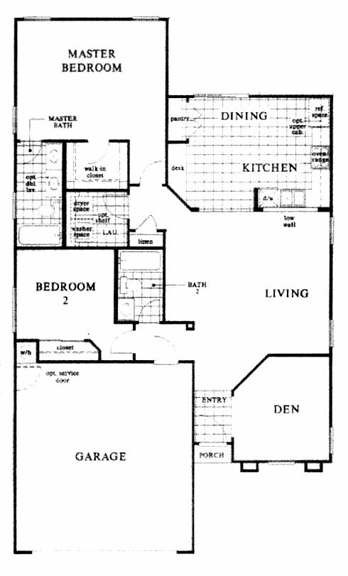 The tiled entry takes you directly past the den and into the large living room. >From here you can access the tiled kitchen with dining area, 2nd bedroom with hall bath and the massive master bedroom and bath with a walk-in closet.