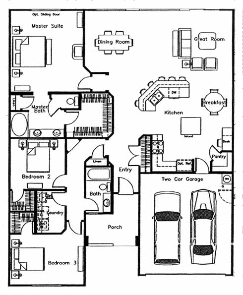The entry takes you past the 2nd and 3rd bedrooms and into the kitchen with nook. From here you can access the large great room, dining room and the master suite and bath with a walk-in closet.