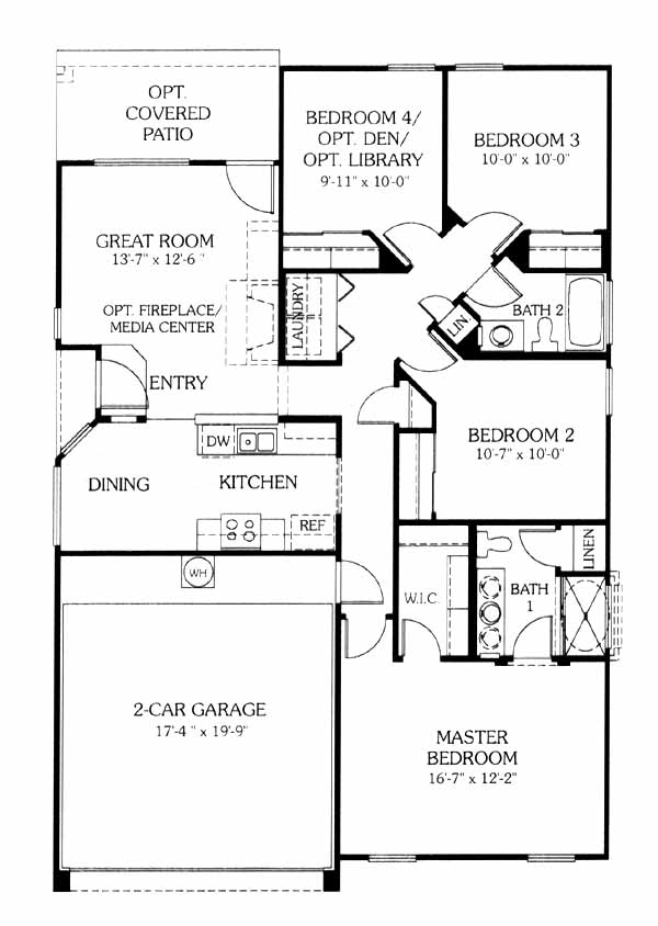 What a cozy home! The layout has a unique use of space that adds space and lots of character. The 4th bedroom can be an optional library. The walk through kitchen has a high counter to allow you to visit with family and friends. The dining has a bay to let in the sunshine! The master suite bath has optional separate tub/shower and double sinks, what a charmer.