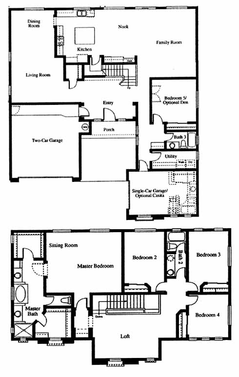 The 1st floor features a large living and dining room area, kitchen with island and nook, family room and den with hall bath. Upstairs you'll find the 2nd, 3rd and 4th bedrooms, loft area and the master bedroom with sitting room and master bath with a walk-in closet.