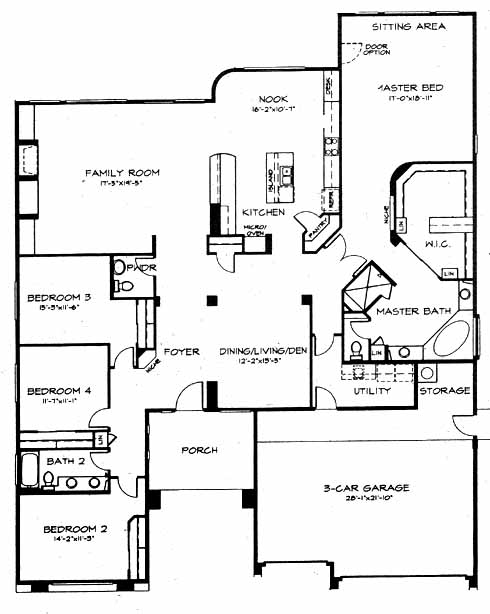 The foyer flanked by the 2nd, 3rd and 4th bedrooms and the dining/living room area takes you into the large family room with optional fireplace. From here you can access the kitchen with island and breakfast nook and the impressive master bedroom with sitting area and master bath with dual vanities and a walk-in closet.