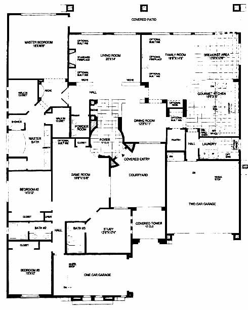 An enclosed courtyard entry graces this intricate home. The circular foyer directs you to the living areas. Walls of cabinets frame the large island kitchen with dramatic rear windows overlooking the covered patio. The Master suite has patio access, duplicate amenities and Roman tub. The two guest bedrooms have their own game room and study with two full baths.