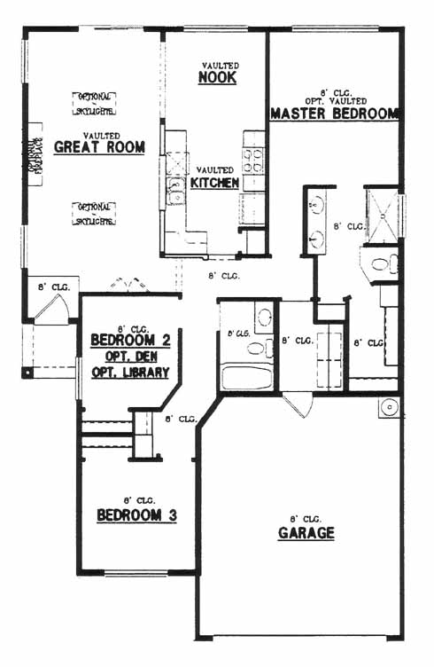 As you enter the home you'll step directly into the great room with optional fireplace and skylights. From here you can access the 2nd and 3rd bedrooms, hall bath, kitchen with breakfast nook and the master bedroom and bath with a walk-in closet.