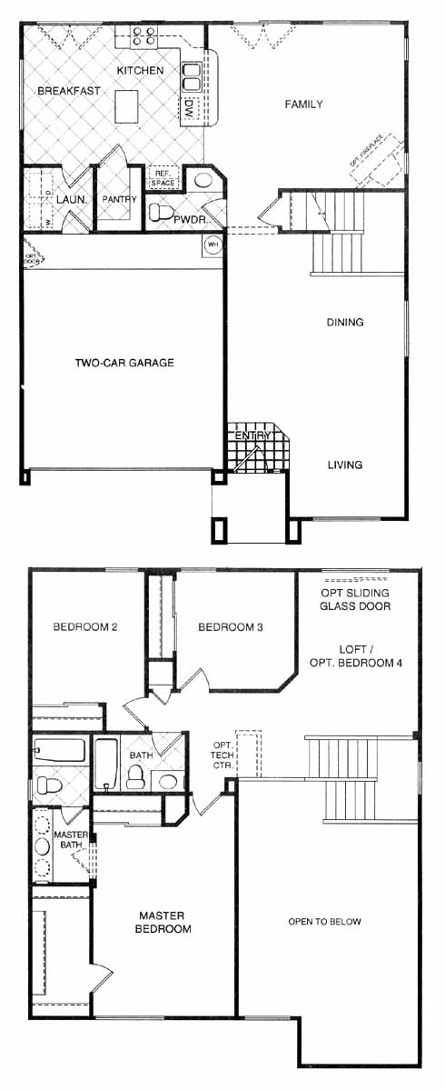 The large living and dining room greets you as you enter the home. Next you'll come to the family room with optional fireplace. Open to the family room is the kitchen with island, pantry and breakfast nook. Upstairs you'll find the 2nd and 3rd bedrooms, loft area, hall bath and the master bedroom and bath with a walk-in closet.