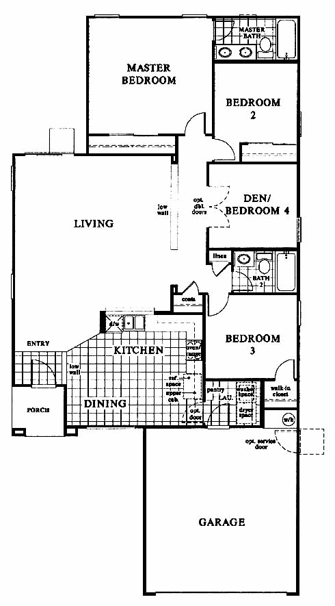 The tiled entry takes you directly past the kitchen with dining area and into the large living room. From the living room you can access the 2nd and 3rd bedrooms, den, hall bath and the spacious master bedroom and bath with dual vanities.