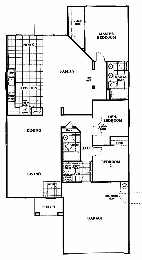 The tiled entry takes you through the living and dining room and into the spacious family room. Open to the family room is the tiled kitchen with pantry and breakfast nook. From the family room you can access the 2nd bedroom, hall bath, den and the master bedroom and bath with a walk-in closet.