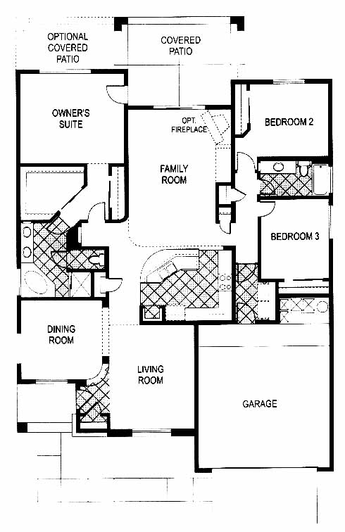 A 16x16 tiled entry leads into formal living and dining rooms. The kitchen, complete with corian countertops, Merillat cabinets with roll out shelves and GE appliances looks into a spacious family room. This split floor plan features recessed lighting fixtures, a choice of either two or six panel interior doors and 16x16 ceramic tile in the kitchen, bathrooms and laundry area. Both the family room and owner's suite open out to a covered patio.