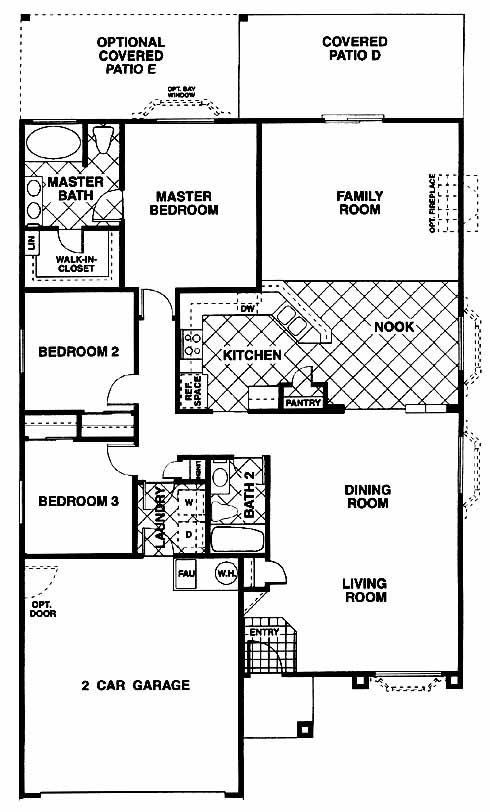 At 1752 square feet, this three bedroom home offers formal living and dining areas as well as a family room and nook off the kitchen. Nine foot ceilings create a feeling of spaciousness. The master bedroom comes complete with dual sinks and a garden tub in the adjoining bath, as well as a large walk-in closet. Distinctive features throughout this home include 12" by 12" tiles in the entry, hock and trowel finish with rounded corners and raised two panel doors throughout the interior. Customize this home by extending the covered patio along the family room, adding a third bathroom or a fireplace in the family room.