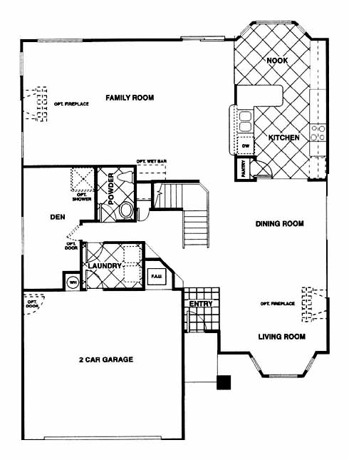 The large living and dining room greets you as you enter the home. From here you can access the den, kitchen with nook and the massive family room with optional fireplace. Upstairs you'll find the 2nd, 3rd and 4th bedrooms, hall bath and the master suite and bath with a walk-in closet.