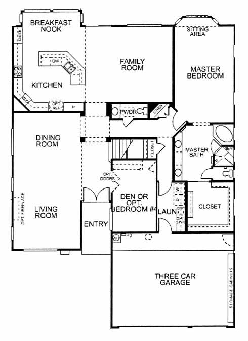 The entry flanked by the den and the living/dining room takes you into the large family room. Open to the family room is the kitchen with breakfast nook. Just down the hall you'll find the master bedroom with sitting area and the master bath with a walk-in closet. Upstairs you'll find the 2nd and 3rd bedrooms and hall bath.