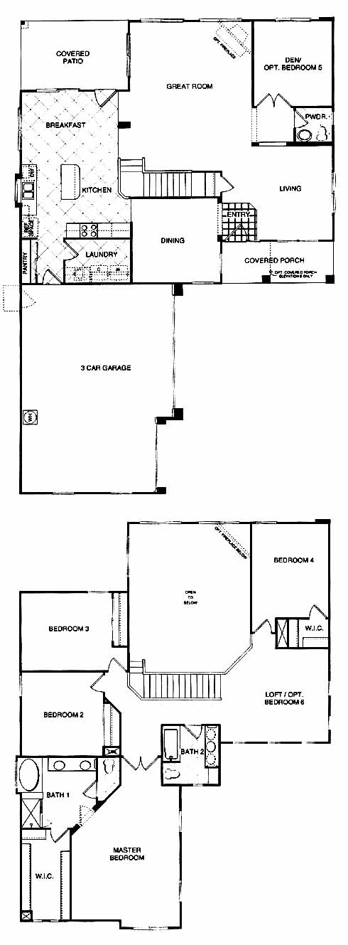 The entry flanked by the dining and living room takes you past the den and into the great room with an optional fireplace. From the great room you can access the covered patio and the kitchen with pantry, island and breakfast nook. Upstairs you'll find the 2nd, 3rd and 4th bedrooms, loft area, hall bath and the massive master bedroom and bath with dual vanities and a walk-in closet.