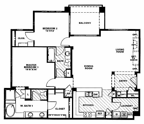 As you enter the home you'll pass the kitchen with pantry just before you come to the large living and dining room area with optional fireplace and TV niche. From the dining room you can access the balcony, 2nd bedroom with Jack and Jill bath and the massive master bedroom and bath with dual vanities.