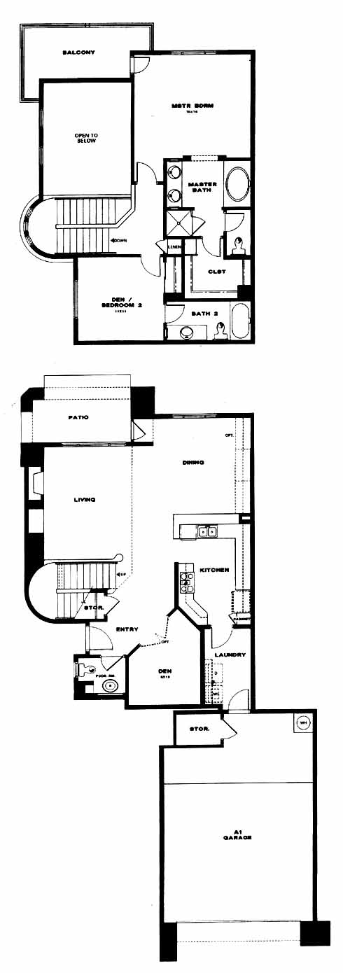 As you enter the home you'll pass the den and kitchen with wrap around counter just before you come to the large living room with fireplace. From the living room you can access the dining room which leads to the patio. Upstairs you'll find the 2nd bedroom with bath and the massive master bedroom and bath with dual vanities and a walk-in closet.