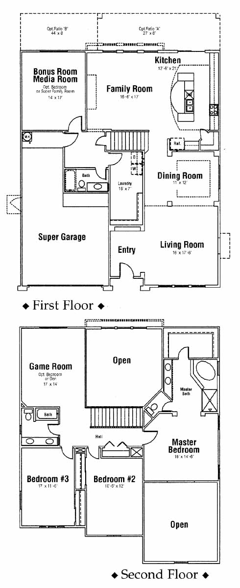 The large living and dining room area greets you as you enter the home. Next you'll come to the spacious family room which leads to the kitchen and the bonus/media room. On the second floor you'll find the 2nd and 3rd bedrooms, hall bath with dual vanities, game room and the impressive master bedroom and bath with a walk-in closet.