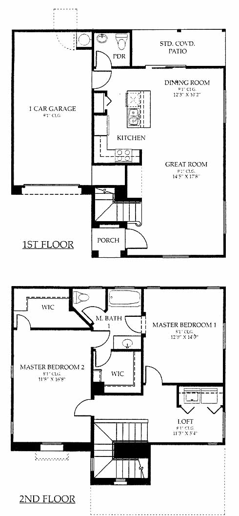 The large great room greets you as you enter the home. Next you'll come to the dining room which leads to the kitchen with island and the standard covered patio. Upstairs you'll find 2 master bedrooms with Jack and Jill bath and a large loft area.