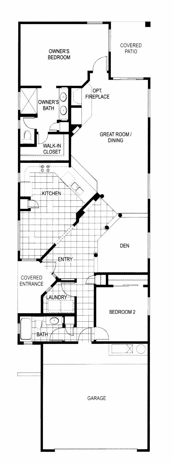 This model offers 1,480 square feet of well used living space consisting of two bedrooms, two baths, great room, and dining area. Some of the standard features include, private gated front courtyards, expansive ten foot ceilings, extensive 12" ceramic flooring, dual sinks, walk-in closets, microwave, and designer lighting packages.