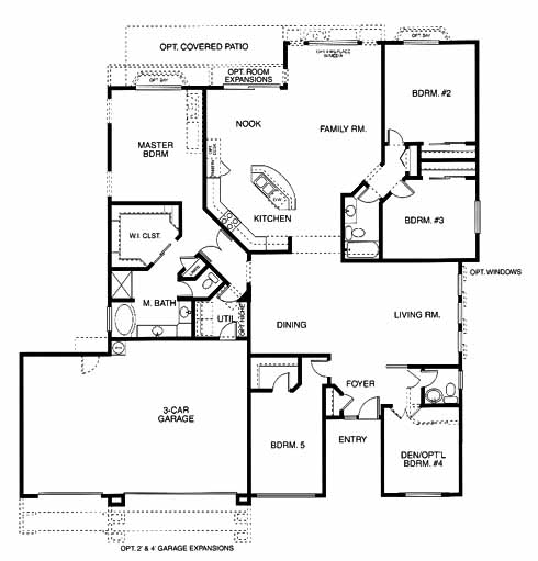 Five bedroom (optional den), 2.5 bath, 3 car garage, owner's suite with master bath including dual separated sinks and a huge walk-in closet. Kitchen has a breakfast nook to one side which overlooks the family room. Dining and living areas are in a separate room off of the entry. Some standard features include Santa Fe and Territorial elevations, rounded corners, hand trowel texture interior walls and ceilings, landscaped front yards with automatic drip irrigation, dual pane low E windows, cultured marble vanity and shower surrounds and panel interior doors.
