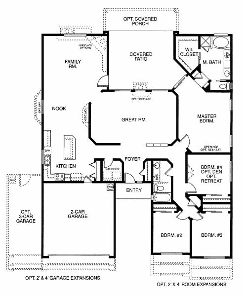 Four bedroom, 2 bath, 2 car garage, owner's suite with master bath with optional corner tub and a huge walk-in closet. Kitchen is spacious with an island and has a breakfast nook to one side which overlooks the family room. Dining and living areas are in a separate room off of the entry. Some standard features include Santa Fe and Territorial elevations, rounded corners, hand trowel texture interior walls and ceilings, landscaped front yards with automatic drip irrigation, dual pane low E windows, cultured marble vanity and shower surrounds and panel interior doors.