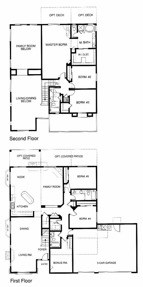 Six bedroom, 4 bath, 3 car garage, owner's suite with master bath with optional corner tub and a huge walk-in closet. The master suite and 2 of the bedrooms are located on the 2nd floor which overlooks the family room and living/dining areas below. Kitchen is spacious with an island has a breakfast nook to one side which overlooks the family room. Dining and living areas are in a separate room off of the entry. Some standard features include Santa Fe and Territorial elevations, rounded corners, hand trowel texture interior walls and ceilings, landscaped front yards with automatic drip irrigation, dual pane low E windows, cultured marble vanity and shower surrounds and panel interior doors.
