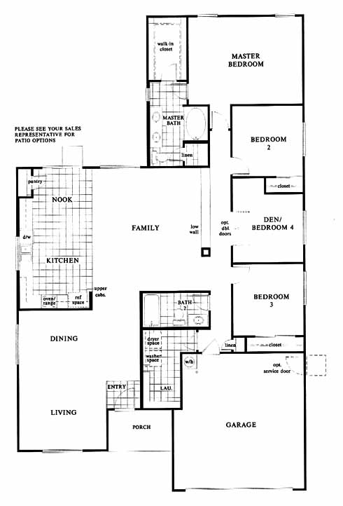 Three bedroom, den (optional 4th bedroom), 2 bath, 2 car garage, owner's suite with master bath including dual sinks and a huge walk-in closet. The spacious kitchen has a breakfast nook and overlooks the family room. The dining and living areas are off of the entry.