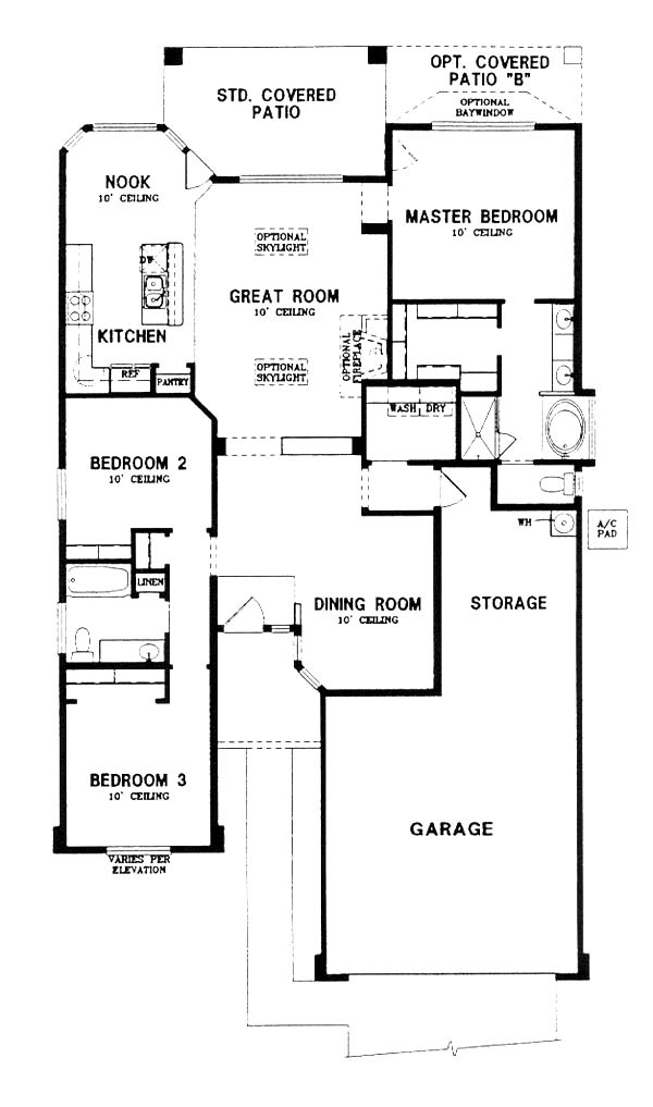 This community offers Southwest architecture that abounds with special features. It is an intimate community with 30 percent of the land devoted to open space, having an abundance of desert vegetation, and is designed to celebrate the glory of the Tucson desert. This neighborhood surrounds natural washes and offers the fantastic scenery of the nearby mountains. This fabulous open split floor plan is designed for outdoor living with the great room, kitchen and breakfast nook all opening to the patio. A spacious and luxurious master bedroom with an expansive walk-in closet and dual sinks, oval garden tub and separate shower compose the master bath. Ten foot ceilings, salt finished driveway, covered patio, superior energy efficient construction and six inch framing make this home not only energy efficient but a superb value. Options are available.