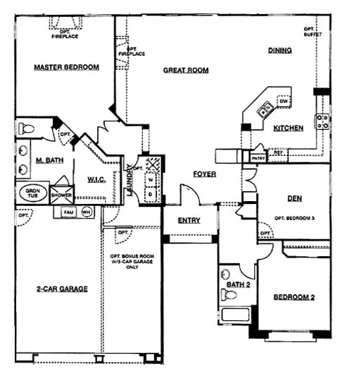 To your immediate right as you enter the home is the 2nd bedroom, hall bath and the den. Next is the great room with optional fireplace. Fro the great room you can access the dining room, kitchen with pantry and the master bedroom and bath with a walk-in closet.