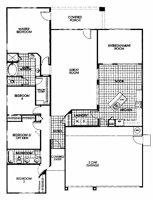 The tiled foyer takes you past the 2nd, 3rd and 4th bedrooms, hall bath and into the spacious great room. From the great room you can access the kitchen with nook, entertainment room and the master bedroom and bath with dual vanities and a walk-in closet.