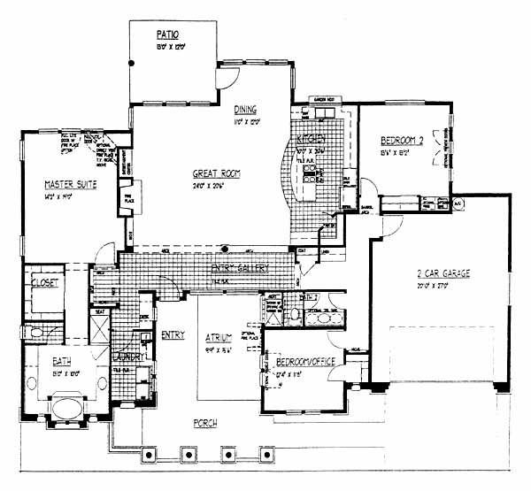 The front porch leads to an atrium which provides a spectacular entrance to this open great room floor plan with connecting gourmet kitchen and dining area. The master suite or shall we call it the master wing offers a spacious bath and walk-in closet. Several different exterior designs and room options are available for a custom choice.