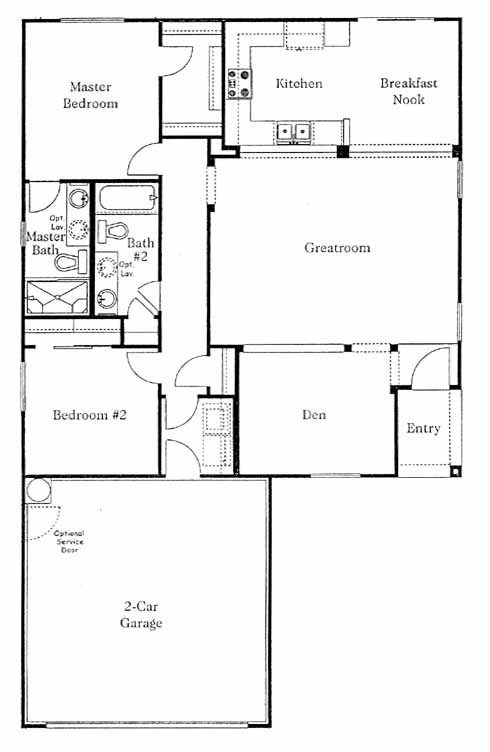 The entry takes you directly past the den and into the large great room. From the great room you can access the kitchen with breakfast nook, 2nd bedroom, hall bath and the master bedroom and bath with a walk-in closet.