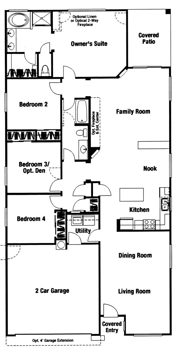 A luxurious home with all amenities. The house has 4 bedrooms, 2 baths, and an enclosed two-car garage with steel door and ceramic tile entries. The family room is large and overlooks the beautiful covered patio. A sizeable gourmet kitchen with a nook overlooks the family room. A gracious master's suite with walk-in closet and cultured marble concertos with a garden tub and separate shower in master bath. Fully enclosed rear yard masonry wall with wrought-iron access gate, an irrigated low-maintenance front yard landscape with automatic drip irrigation enhancing this home's natural beauty. Additional options include den, fourth, fireplace entertainment center, garage extension.