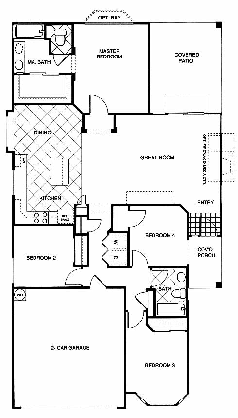This 4 bedroom, 2 bath home features a split bedroom floor plan. The spacious kitchen has an island and dining area that overlooks the great room. The master suite and bath has a large walk-in closet and dual sinks.